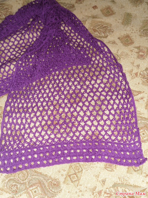 Вот такой у меня палантин, ниточки Вита Сапфир(45% шерсть,55% акрил),100гр-250м, ушло 2 целых моточка и от 3го чуть-чуть, крючок 4, мои любимые соломоны и впервые попробовала технику брумстик. Цвет на самом деле скорее вишневый. Читать полностью