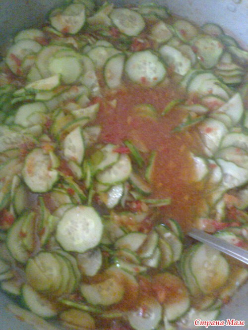 Выложить в помидорно-перечную смесь подготовленные огурцы