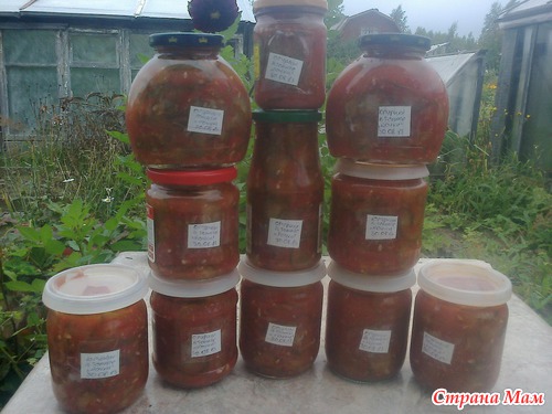 Заготовок я делаю безумно много,муж их в гараж уносит на хранение и он же зимой их домой приносит,вот он мне и сказал,что б я все банки подписывала.Идёт в гараж я пишу список...Например 2 банки "Кочка"огурцы,2 банки салат"Кочка" и тд