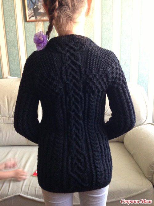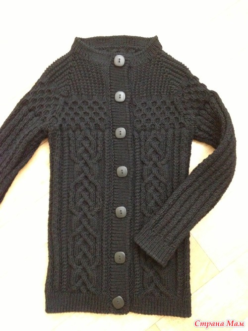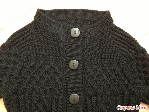 Для школы связался такой кардиганчик. В школе требование, чтобы кофточка была только чёрного цвета, в итоге вот что получилось. Взяла описание свитера и переделала его в кофточку на пуговицах.