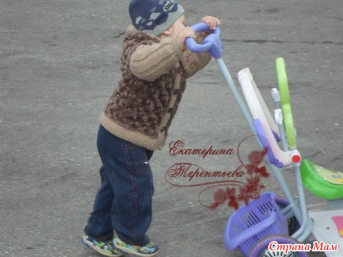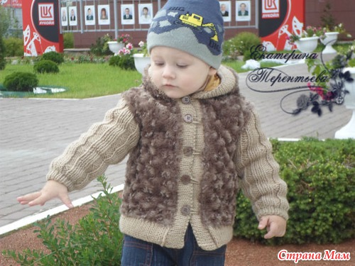 Здравствуйте! Ни схемы, ни описания нет. Я взяла готовую выкройку курточки-ветровки, часть деталей выкроила из меха, часть связала. Планки вязала английской двойной резинкой, чтоб плотнее были.