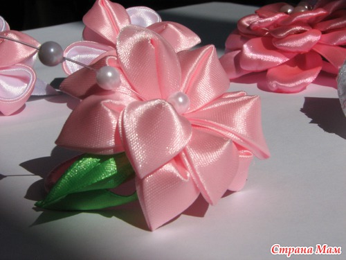 розовый цветок с бусинами