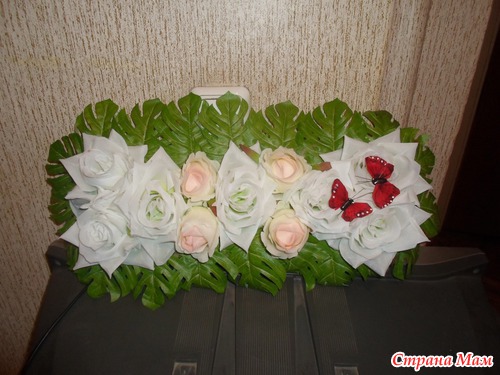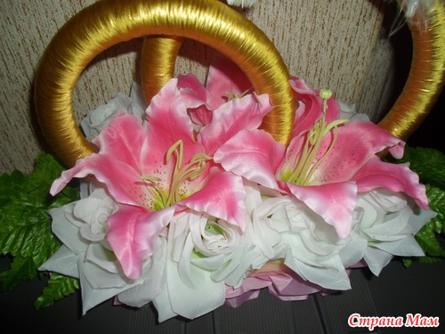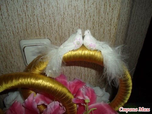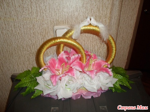 Можно еще соединить шляпы жениха и невесты на машинку, красота будет