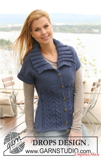 Вяжется прямыми и обратными р. на круговых спицах начиная от середины переда.