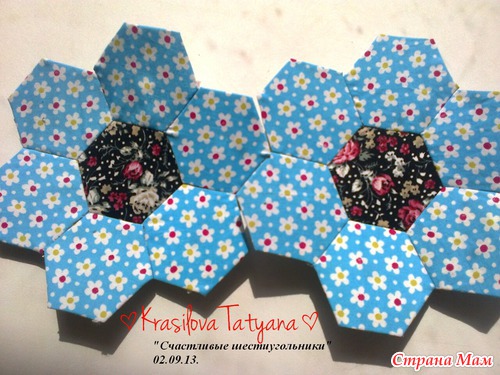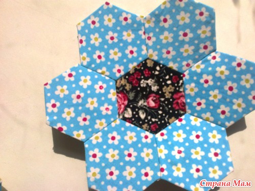 Совместный пошив начался уже давно, и я тоже записалась, но всё не получалось начать. Исправляюсь несколько фото моих шестиугольников, надеюсь получится быстро, по мере возможности буду стараться. Я уже видела готовые работы, руки так и чешутся что-нибудь творить. Но как только доча видит, что я взялась за тряпочки нам сразу то писить то какать то ням ням, вообщем думаю многие с этим знакомы. А вот и фоточки