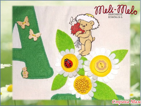 Мишки- это термотрансферы. Ромашки- из фетра, расшитые деревянными бусинами. Ну и всякие другие украшалки