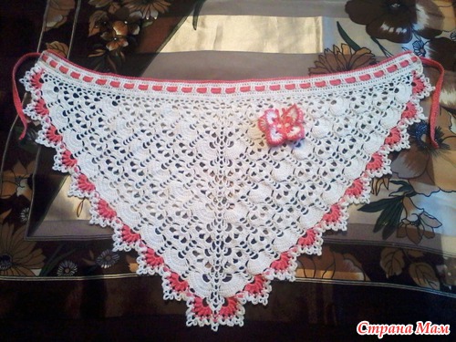 Связалась вот такая косыночка для дочки в садик. Он-лайн здесь: https://www.stranamam.ru/post/5290938/ Огромное спасибо автору за такой подробный он-лайн!