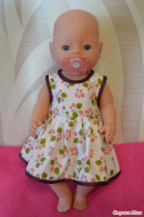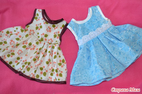 ? Немного посидев покумекав мы разделили обязанности, дочка её кормит, поит, делает дела на горшочек, а я добываю одёжу и пока вот что получилось, два платьица, на липучке сзади.