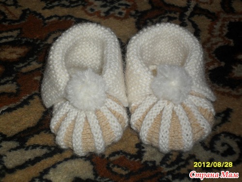 Из остатков пряжи связала пинеточки на подарок: