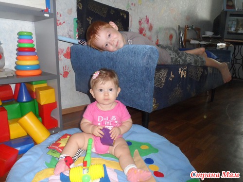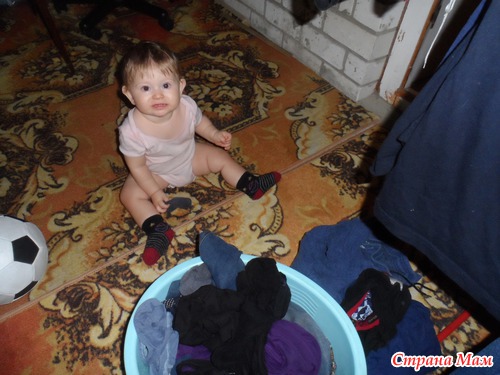 Досужая Алиска до всего. Уже просто так не хочет играть сама. Я должна быть все время в поле зрения. Стоит уйти из комнаты, так тут же ноет и ползет следом с криками "Маммаммам"...