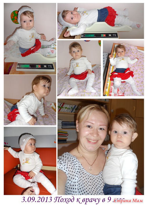 Рост 73. Не выросла))). Вес 9600. (+100гр). Нормально.
