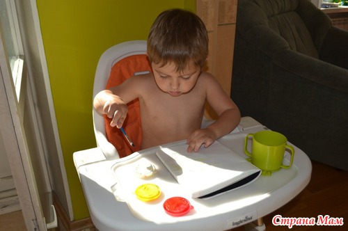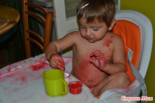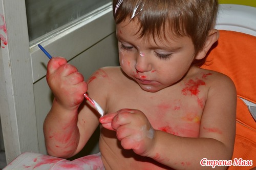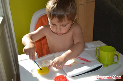 Мой средний сын любит рисовать, ну как отказать, посадила, дала краски, водичку, кисточку.