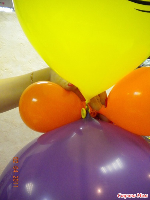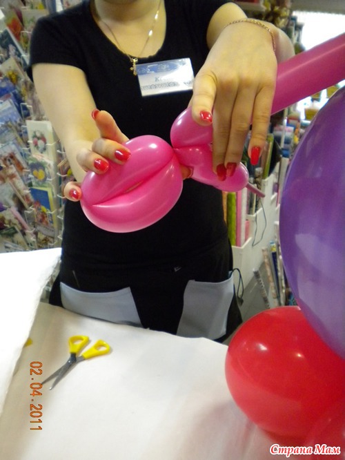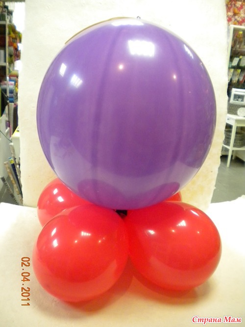 Шаг 4. Создаем «туловище». Для этого надуваем самый большой шар (18 дюймов). «Туловище» привязываем к подставке (фото 4)