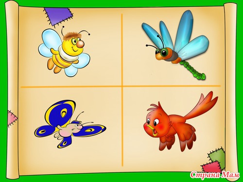 Например, три изображения относятся к классификации «насекомые», а воздушный шарик относится к классификации «игрушки», значит шарик лишний… Внимательно посмотри на картинки и определи, какой предмет и, почему является лишним».