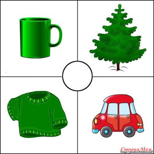 Стимульный материал: картинки с изображением 4 предметов, один из которых не подходит к остальным по следующим признакам: