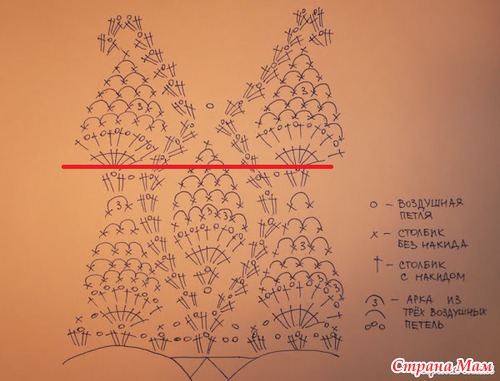 По схеме довязываем до красной черты