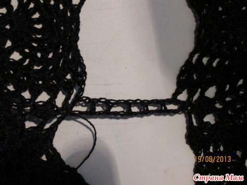 Теперь соединяем передний и задний средние ананасы цепочкой из 14 возд. петель.