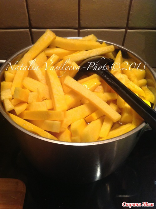 1. Режем тыкву на брусочки.