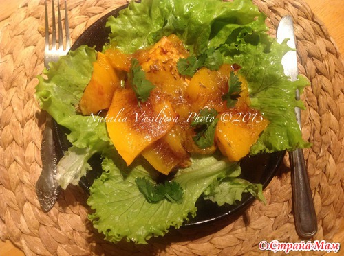 Тыква запеченная в меде. Рецепт довольно специфический, для любителей сочетания не обычных вкусов.