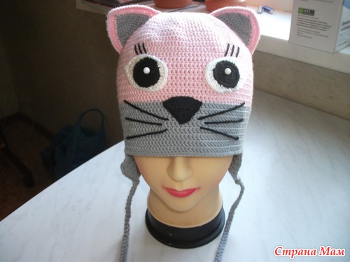 Возраст для кошки 9лет и 6лет для паука,но это не показатель,все зависит от размера головы.У кошки размер 54-55, а это почти взрослый( на нее ушло 3 мотка пряжи 50гр 120м), а на паука( обхват 52см) один целый и чуток второго мотка, шапочки без подклада, поэтому если хотите потеплее, расчитывайте еще и на подклад пряжу.Если, что пишите-помогу