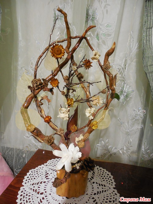 Долго я думала над поделкой.., было у меня много разных сухоцветов и коряга ободранная...