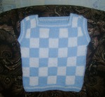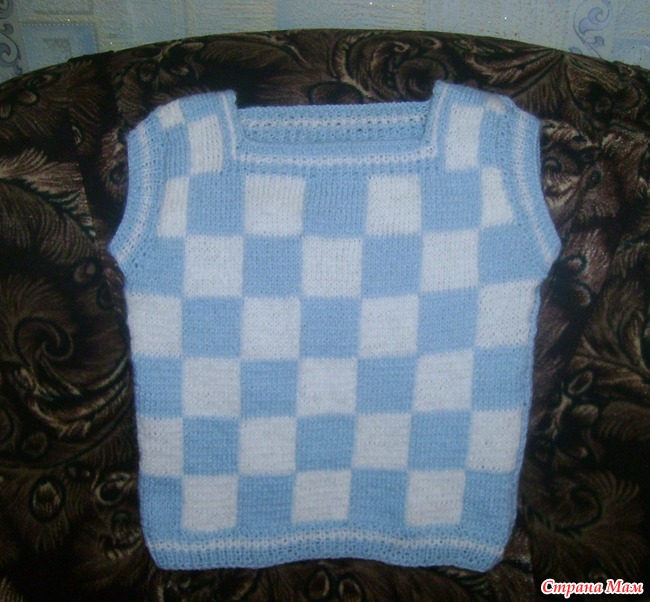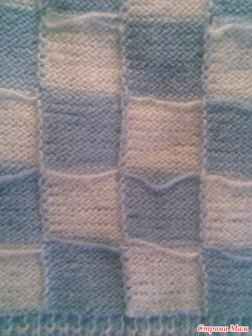 Когда провяжешь рядок от голубого квадрата, потом просто заводишь белую нитку за голубую