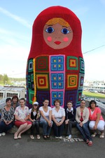 17 дней 14 девушек вязали наряд для одной страшненькой, ржавеющей на берегу Енисея в центре города Красноярска, матрешки новый наряд. В ходе работы, мы даже придумали сделать ей личико! Доброе и красивое личико, которого у нее, как и одежды, от рождения не было!