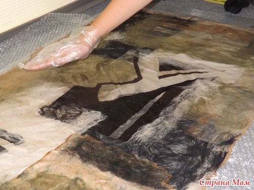 Поверх шерсти выкладывала кусочки шелка...