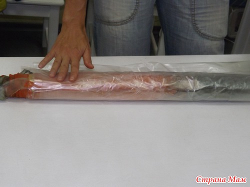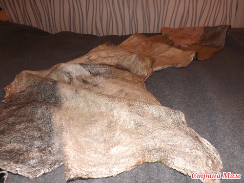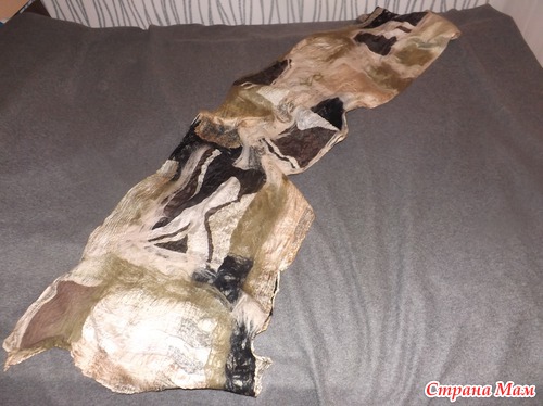 Потом началось непосредственно валяние, в процессе которого шерсть сваливалась и скрепляла собой все элементы. Сначала вы свернули свои палантины в рулончик и валяли аккуратно.