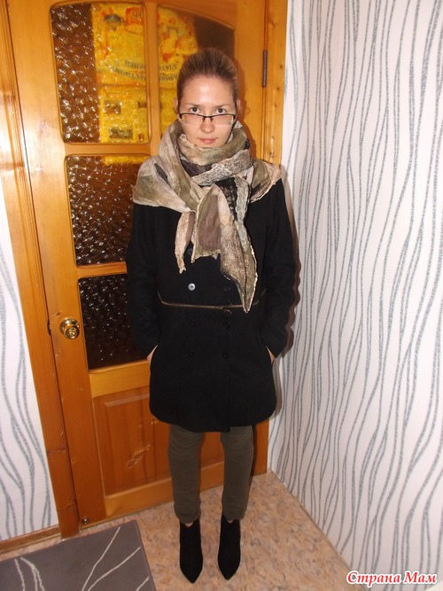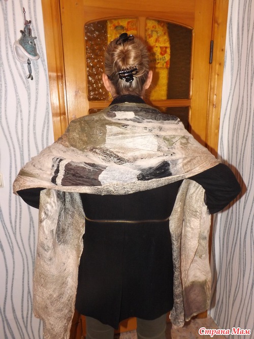 Ещё когда мы записывались на МК по валянию палантина, Оксана спросила, в какой цветовой гамме мы хотим видеть этот самый палантин. Я, конечно же, захотела гамму хаки-беж-серый-черный