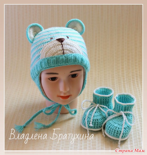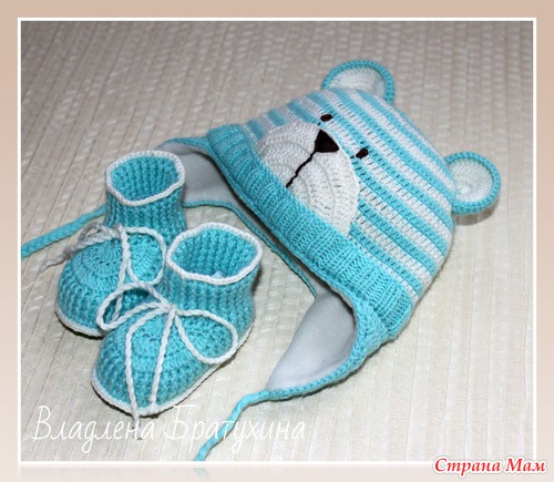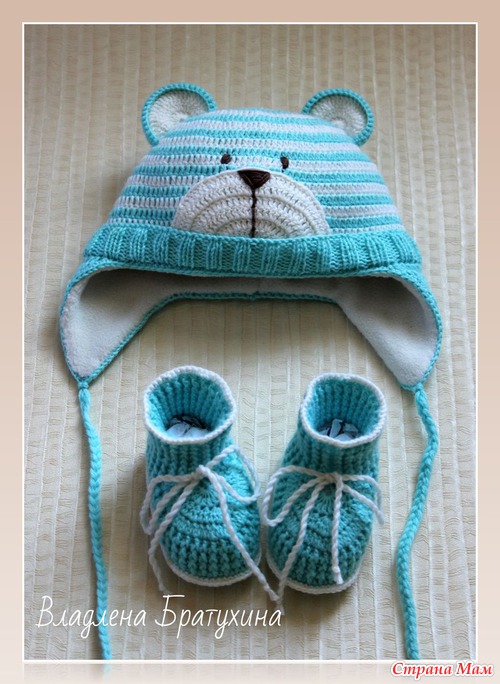 Ниточки "Детский каприз", крючок №2. Шапочка утеплена флисом. Комплект связан на 3-6 мес.