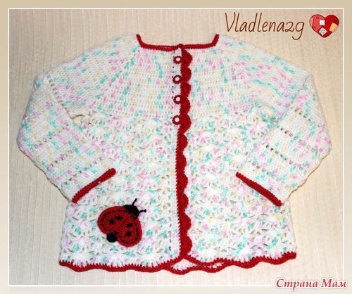 Кофточку очень украшает коровка Так свежо и... тепленько смотрится кофточка с ней .