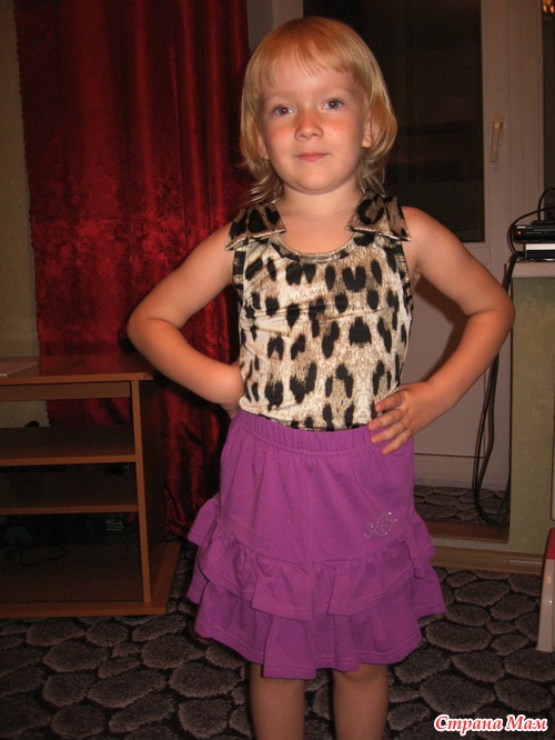 Дочка, как одела эту юбочку, так весь вечер в ней и проходила, и сегодня в садик в ней пошла... На фото она еще и в топике Валенсия из Л-Текс: