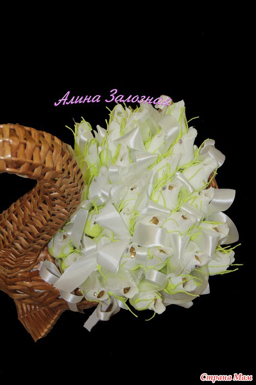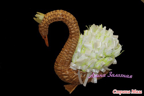 Вот такой подарок получился начальнице на 55 лет от нашего коллектива))) Там внутри 36 конфеток ну и естественно 36 роз))) хотели 55, но столько не влезло))) Когда мне принесли вместо карзинки лебедя я даже не знала с какой стороны к нему подойти)))) Но итог мне самой очень понравился даже отдавать было жаль)))