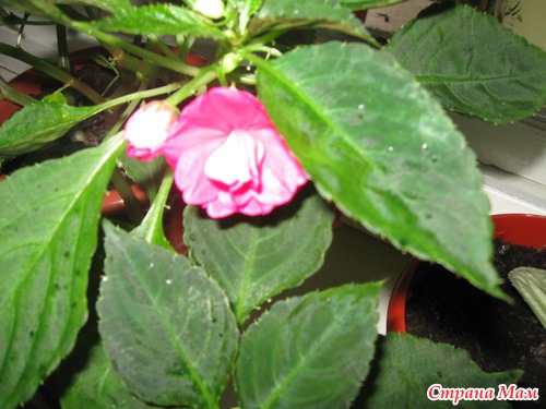 А это бальзаминчик, недавно посадила росточек, порадовал первыми цветочками.