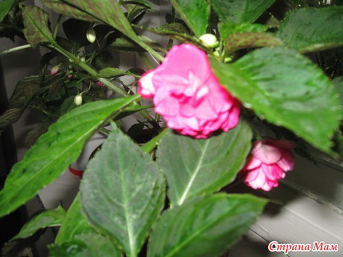 А это бальзаминчик, недавно посадила росточек, порадовал первыми цветочками.