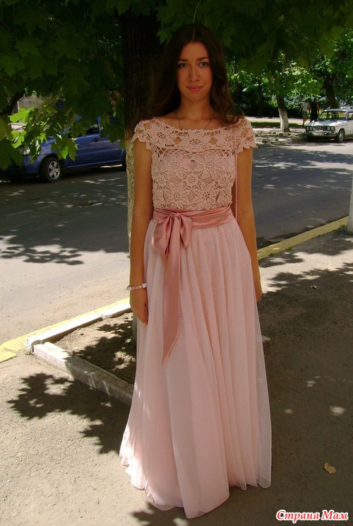 Вот такое платье, назвала его "Pink Blush" (по названию цвета пряжи) связано дочери на выпускной, из прекрасного шелка (3000м\100гр, весит 500 грамм), крючком №3, по мотивам модели Флора Ванессы Монторо. Вязать было очень приятно, шелк дает такие непередаваемые ощущения, какое-то физическое наслаждение, от самого процесса до тисканья полотна в руках...