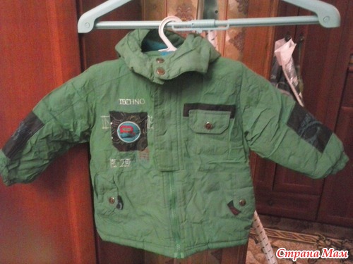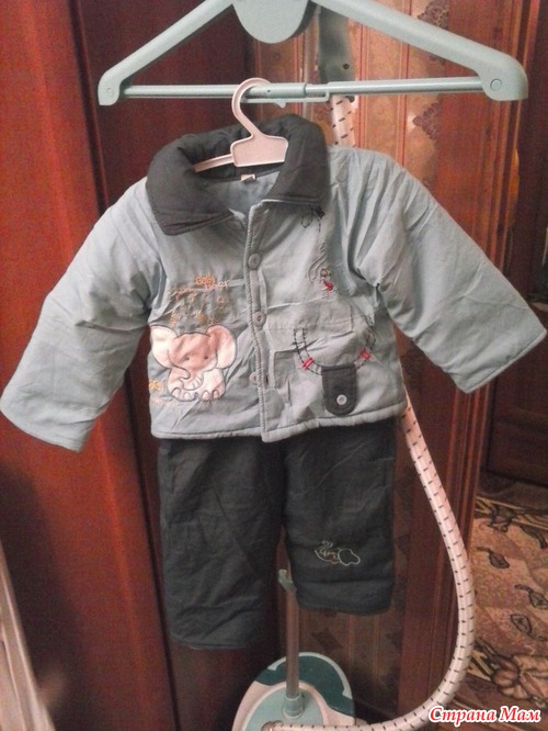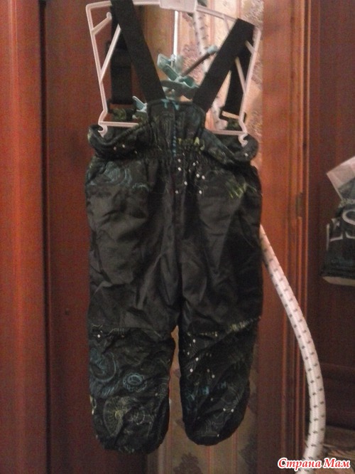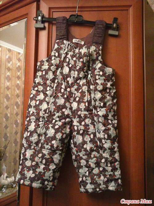 Еще один полукомбинизончик - пестренький с изображением динозавров. На брючинах также резиночки. 2 молнии - удобно надевать (правда одна молния не родная, но это не сильно заметно). Мы носили до -5 градусов. Курточку можно заправить внутрь.