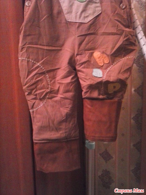 Полукомбез прошел некоторое усовершенствование - по низу брючин пришит коричневый кожзам, т. к. малышок подрос и длина штанин стала коротковата (можно легко отпороть без ущерба)