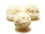 Готовые шарики обваливаем в кокосовой стружку и наслаждаемся видом и вкусом.