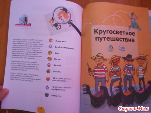 Интересное, красочное пособие на развитие мыслительных и логических способностей школьников. В силу того, что книга написана зарубежным автором, тематика заданий соответствующая, но это можно отнести к плюсам, т. к. у ребенка значительно расширятся познания о традициях и особенностях культуры народов разных стран. Книга разделена на три части: кругосветное путешествие, путешествие в мир животных и путешествие в историю. Для решения некоторых заданий, возможно, понадобится обращение к словарям и энциклопедиям, а также пригодятся дополнительные материалы, например, спички или счетные палочки, и т. к. уровень сложности их довольно серьезный)), ну и запаситесь терпением и бумагой с карандашом, так как сказано в предисловии, часто сообразительность не зависит от возраста и порой дети обыгрывают своих мам и пап!