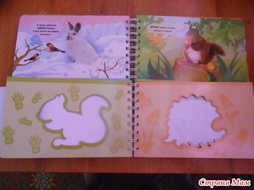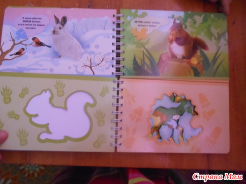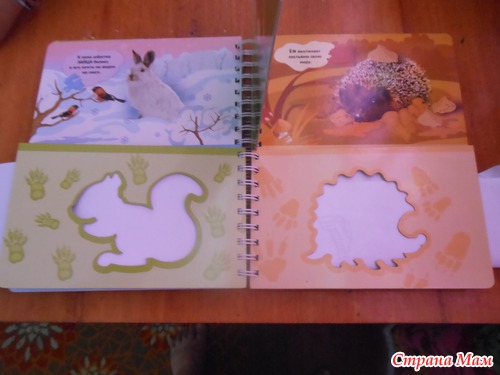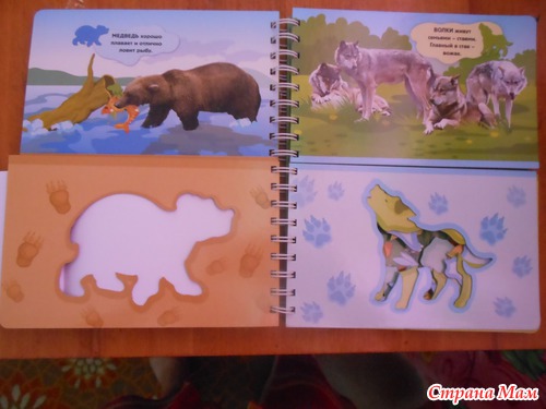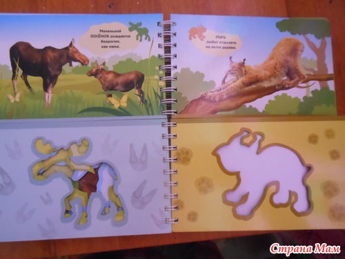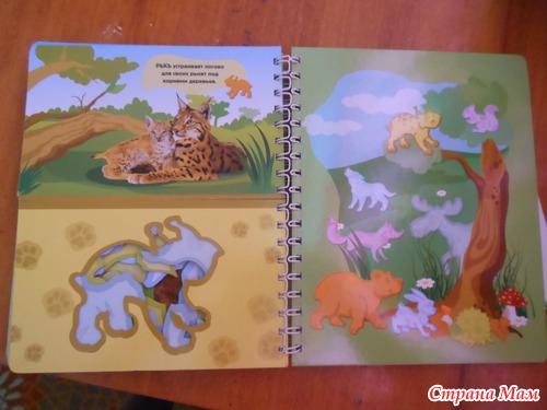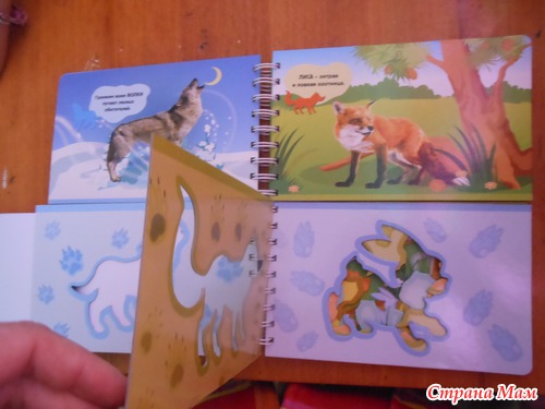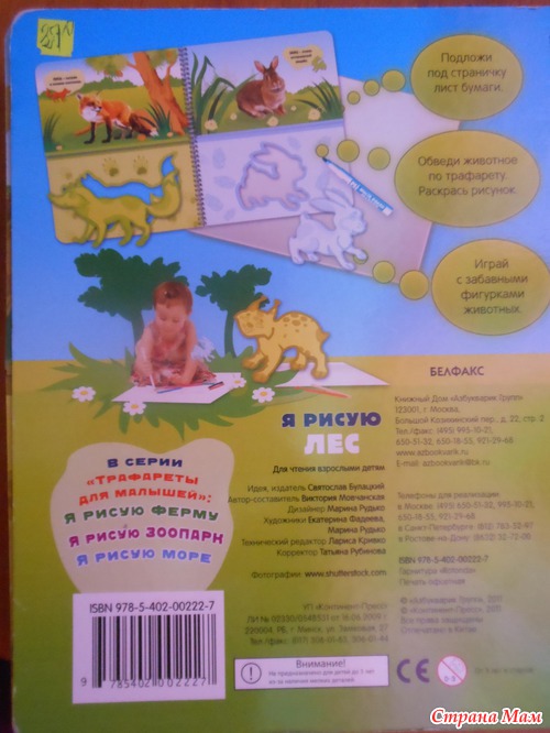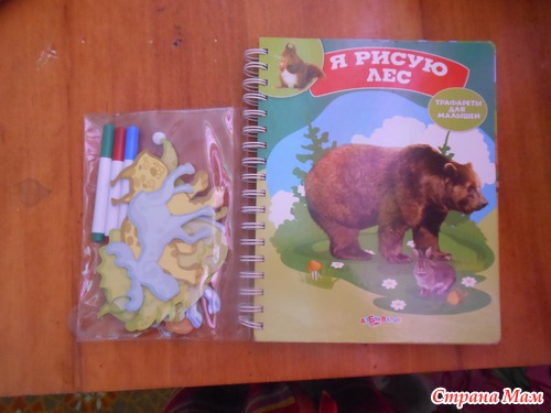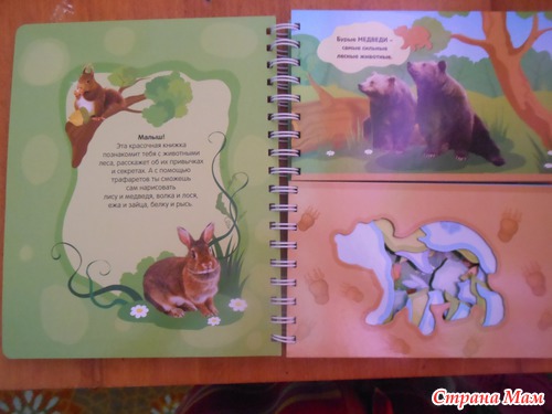 Я называю такие книжки игрушками. По ним можно и обучать малыша а можно и просто играть. Данная книжка знакомит ребенка с животными леса. Расскажет об их привычках и секретах. А с помощью трафарета можно самому нарисовать лису или медведя... а потом придумать о них сказку. Трафареты в книжке двух видов. В самой книге и в конверте на книге. Те что в конверте выглядят как фигурки животных.