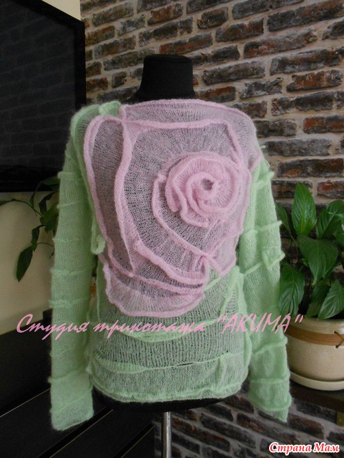 Пряжа - кид-мохер, цветок - это фриформ, связано, как придумается... Задействованы и прямые, и круговые спицы, и крючок, и игла....