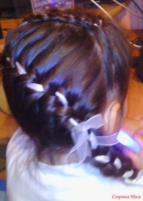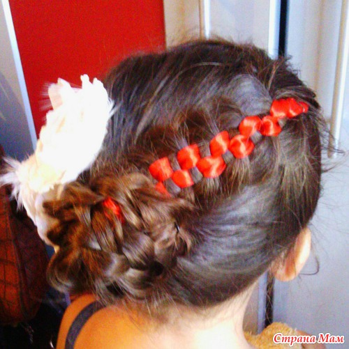 Вот всем кто спрашивал, французская коса с лентой.