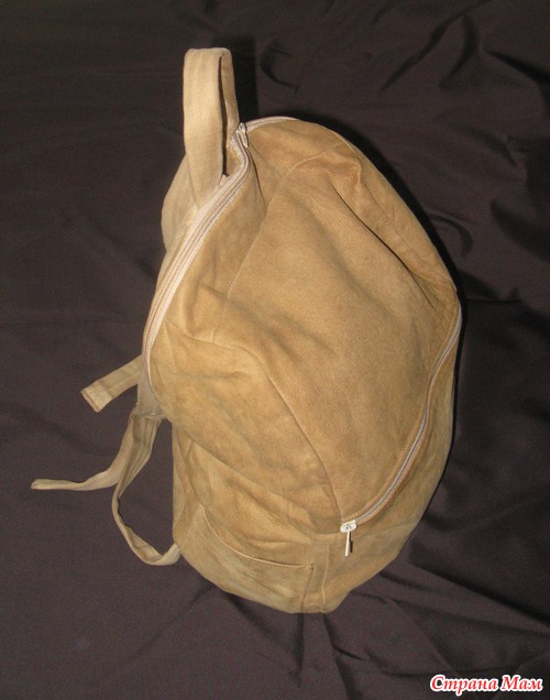 ну, может кому и не понравится, но мне нравится. Люблю замшу. Это одна из причин, по которой я вообще взялась за его пошив. Не смогла найти в продаже замшевых рюкзаков.Из замши шить сложно, особенно потому, что моя машина не берет такую толстую замшу. Пришлось вертеть ручку самой - педаль не брала.