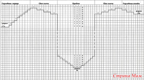 С 11-го ряда (59-й ряд от начала вязания) закрывать петли по схеме (обозначено красной линией).