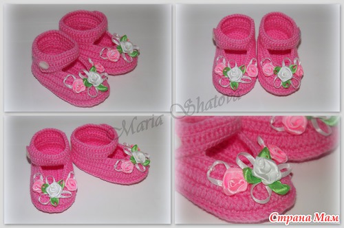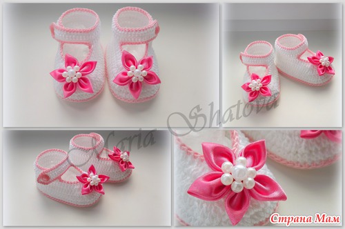 туфельки для маленькой принцессы. Описание http://handmadenatasha.blogspot.ru/2013/03/blog-post_31.html