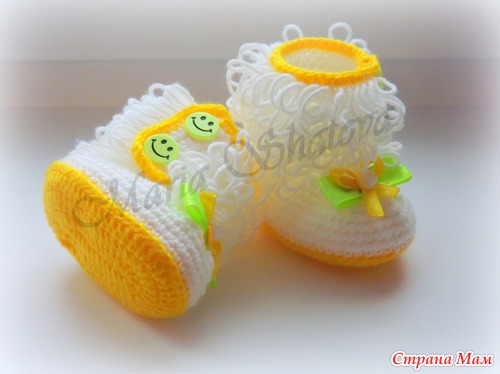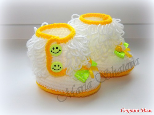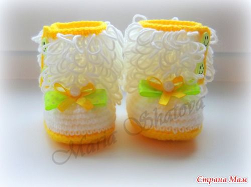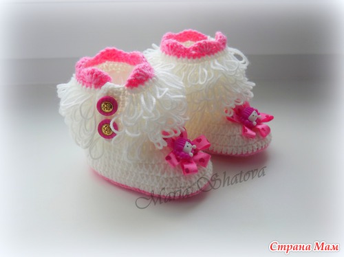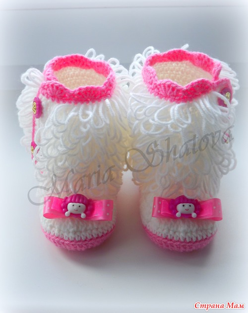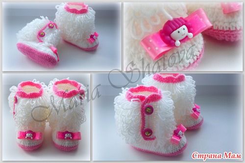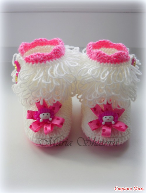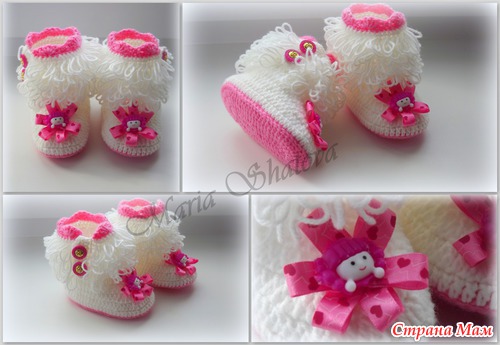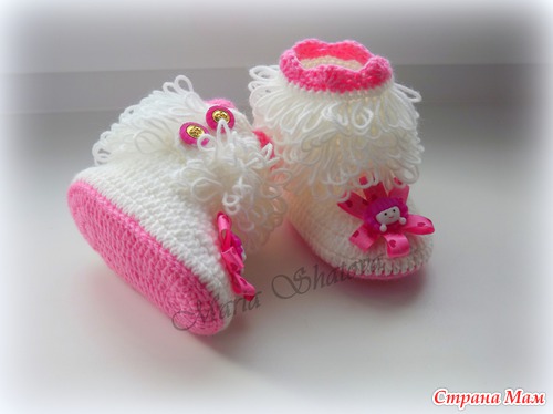 Угги для маленьких принцесс. Описаний много, но не получается следовать точь-в-точь, за основу брала наиболее мне понятные и переделывала под себя http://cluclu.ru/blog/deti_vyazanie/1620.html и https://www.stranamam.ru/post/2462766/