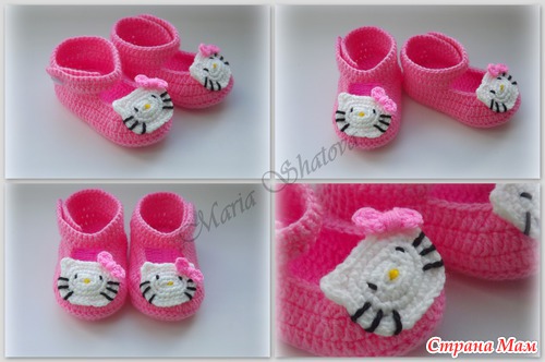 туфельки "Хелло Китти", описание то же самое (ссылка выше). Мордочку вязала по описанию https://www.stranamam.ru/post/1883218/