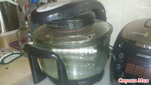 Подготовили, налили в чашу аэрогриля воды и положили на бочек ветчинницу.